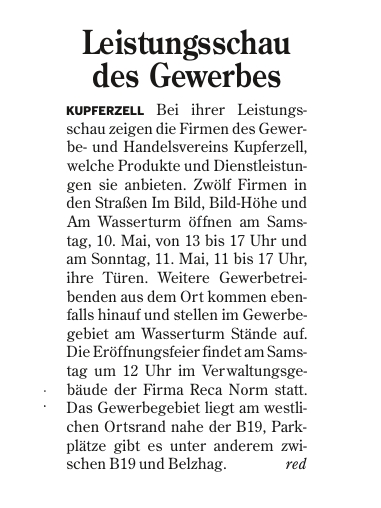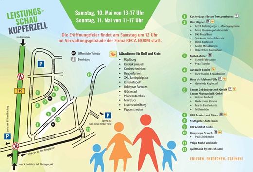 Fotos von der Eröffnung der Leistungsschau bei RECA NORM und vom anschließenden Rundgang finden Sie in der Bildergalerie, ebenso Impressionen vom Leistungsschau-Sonntag und den Verlosungen am Spätnachmittag.