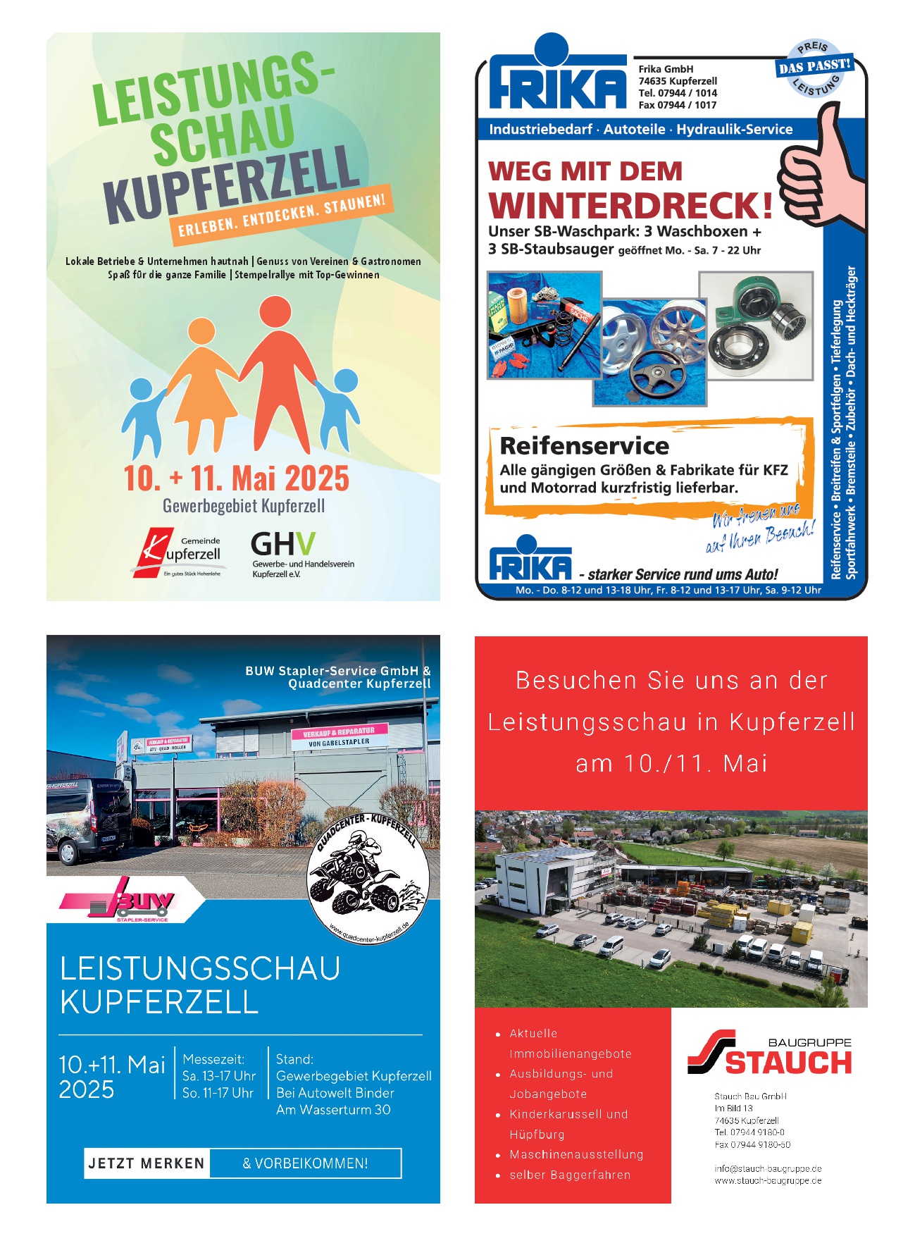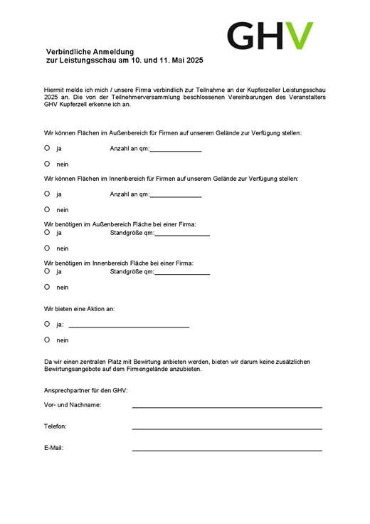 Am Muttertagswochenende 2025 fand im Gewerbegebiet Im Bild in Kupferzell wieder eine Leistungsschau des GHV statt. Ankündigungen und Nachbericht finden Sie auf dieser Seite.